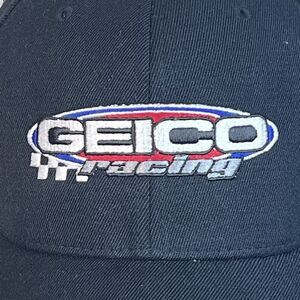 TRUCKER Cap Geico Racing Black & Blue Embroidered Nascar #13 MaxPapis SIGNED Hat