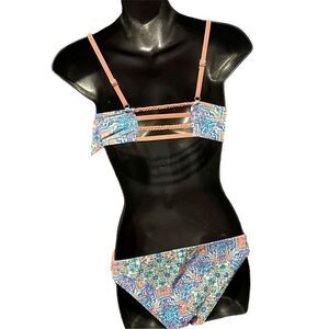 TRUE CRAFT A mix of florals and paisleys combine on a flounce top to create this pretty patchwork swim top and Bottom size small top and medium bottoms good condition