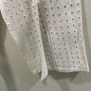 TRUE DESTINATIONS (NEW) Woven Eyelet Wide Leg Front Split Crop Pant, White - XL