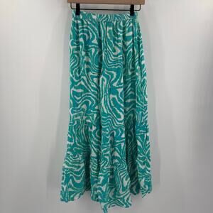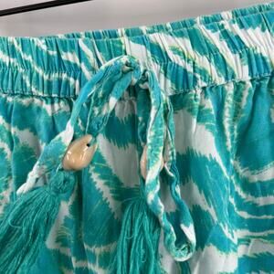TRUE DESTINATIONS Palazzo Pants Size Medium Beach Travel Resort Coastal Tiered Ruffle Cover Up Cropped Turquoise Animal Print Swirl Elastic Waist Seashell Drawstring