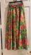 Bright floral maxi skirt with a colorful design. Features pink, yellow, and green hues. It’s a circular skirt, super fun! The fabric looks “ silk like” shiny . It’s pretty long, see measurements before ordering.