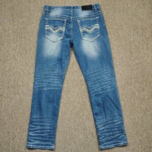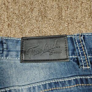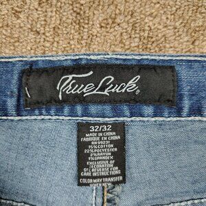 TRUE LUCK Jeans Men's 32x32 Blue Cotton Blend Stretch Big Stitch Whiskered
