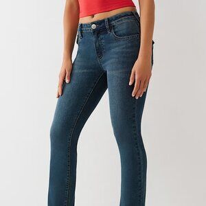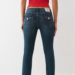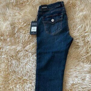 TRUE RELIGION BILLIE MID RISE FLAP STRAIGHT JEAN in Dark Woodland Wash NWT