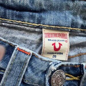 Step out in style with these True Religion boot cut jeans, perfectly tailored for a sleek fit. Measuring 40 inches long with a 32-inch inseam and a 26-inch waist, these jeans hug your silhouette while giving you room to groove. Whether you're hitting the city streets or dancing the night away, their classic boot cut adds a touch of cool confidence to any outfit.