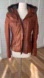 TRUE RELIGION BROWN DISTRESSED LEATHER HOODED FAUX FUR JACKET SZ. Small