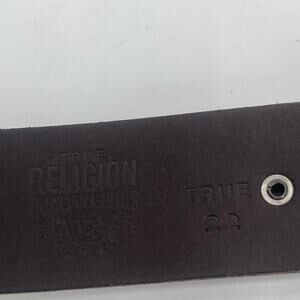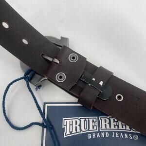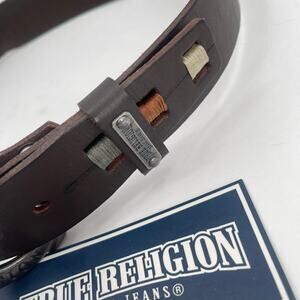 TRUE RELIGION Belt Size 22 NWT Brown Leather Stitch Detail Womens Buckle