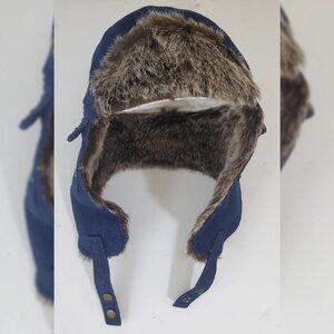 TRUE RELIGION DENIM FAUX FUR TRAPPER AVIATOR HAT STITCHED HORSESHOE LOGO POCKET