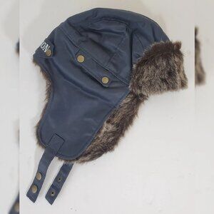 TRUE RELIGION FAUX FUR TRAPPER AVIATOR HAT STITCHED WITH PATCH ICONIC LOGO BLUE