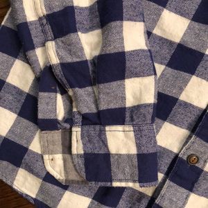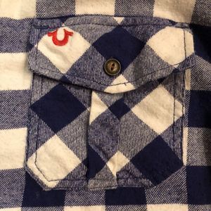 TRUE RELIGION Men’s Fleece Long Sleeve Navy White Plaid Button Down Shirt