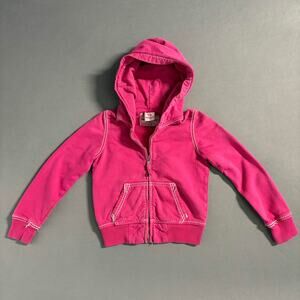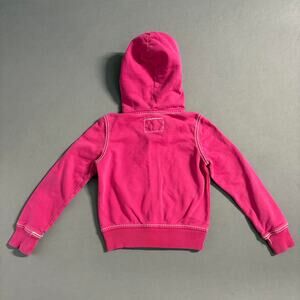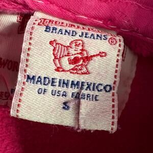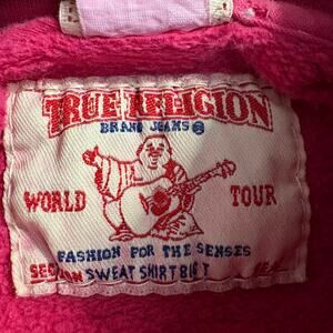 TRUE RELIGION Girls Big T Double Stitch Pink Hoodie Size S 100% Cotton Y2K Style