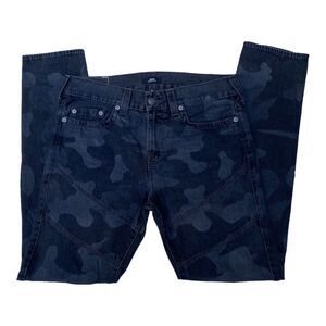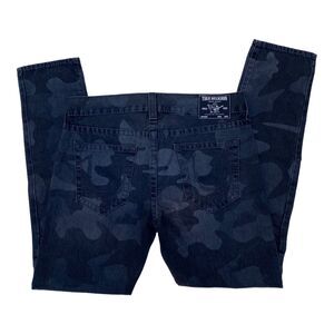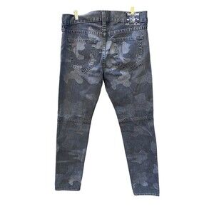 TRUE RELIGION Gray Camo ROCCO Relaxed Skinny Moto Men’s Jeans EUC size 33 waist measurements 38"