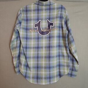 TRUE RELIGION HS Brushed Flannel Women's Button Up Long Sleeve Blouse Iris Small