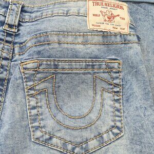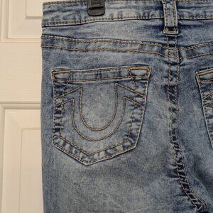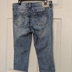 TRUE RELIGION JENNIE CURVY MID RISE SUPER SKINNY CAPRI BLUE JEANS SIZE 31 . Good Condition.
