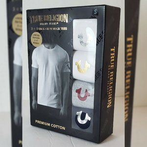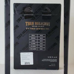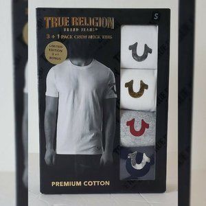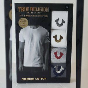 TRUE RELIGION LOUNGEWEAR 3 + 1 PACK CREW NECK TEES MEN SZ M METALLIC LOGO W/G/B