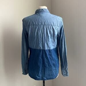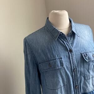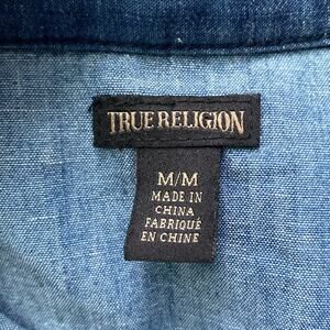 TRUE RELIGION Linen Blend Chambray Utility Shirt Womens Sz Medium Button Down
