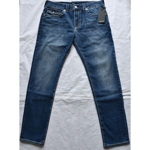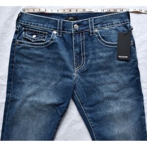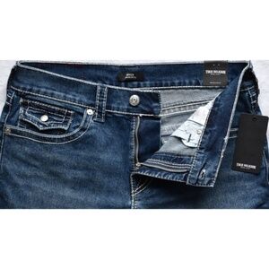 BRAND NEW WITH TAGS TRUE RELIGION ROCCO BIG T FLAP RELAXED SKINNY DARK ROPER JEANS.