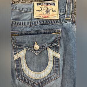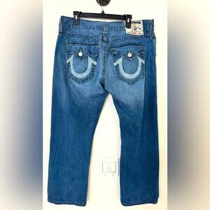 TRUE RELIGION MENS STRAIGHT JEANS MENS SIZE 40 HORSESHOE STITCH LOGO