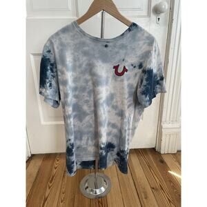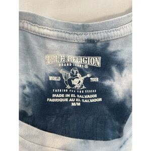 TRUE RELIGION Mens Medium Buddha Graphic Logo Blue Tie-Dye T Shirt 100% Cotton