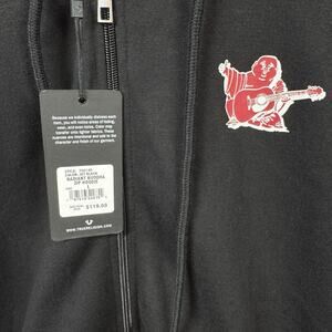 TRUE RELIGION NEW Mens Sz L Sweatshirt Hoodie Jacket Black Buddha Zip Up Logo Fleece