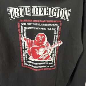 TRUE RELIGION NEW Mens Sz L Sweatshirt Hoodie Jacket Black Buddha Zip Up Logo
