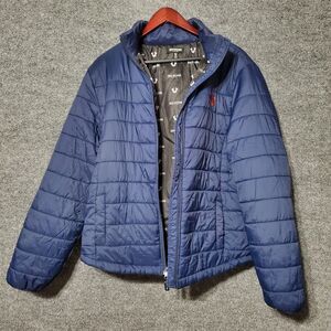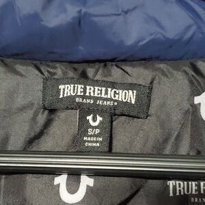 TRUE RELIGION Puffer Jacket Mens Small Blue Winter 107687 Navy Full Zip Outdoor