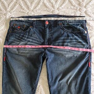 TRUE RELIGION Ricky Flap Super T Corduroys Indigo Blue & Red Pants Size 44 RARE