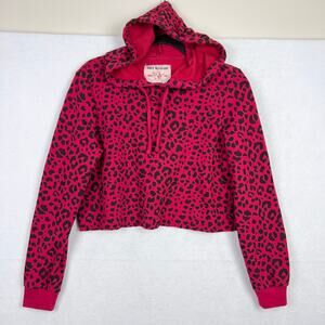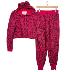 TRUE RELIGION 2PC Set Ruby Red Leopard Black CROPPED HOODIE & Drawstring Joggers Small