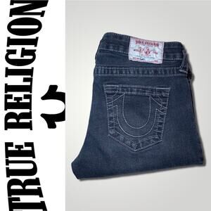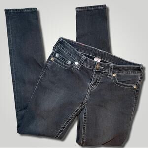 TRUE RELIGION SKINNY LOW RISE HORSESHOE POCKET CHARCOAL BLACK JEANS SIZE 28