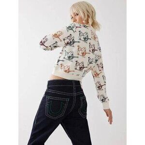 TRUE RELIGION Women's Allover Buddha Print Crop Sweatshirt Size M