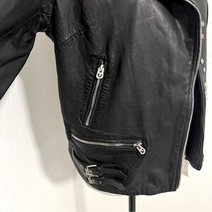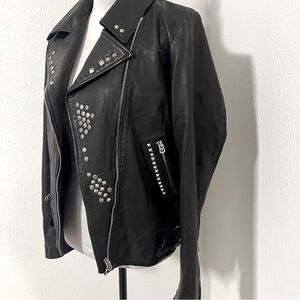TRUE RELIGION Women’s Leather Studded & Zips Black Full Zip Large Jacket NWOT