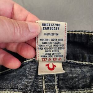 TRUE RELIGION Y2K Straight Leg Jeans Women Tagged 28 (Measures 32") Big T Stitch