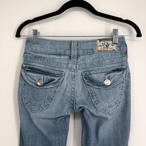 True Religion light blue wash straight skinny jeans. Size womens 24.