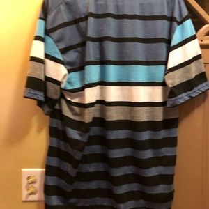 TRUE ROCK stripped t-shirt Stripes are Blue Black and Gray. AWESOME SHIRT & AWESOME DEAL. SAME DAY SHIPPING.