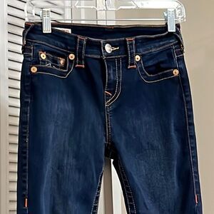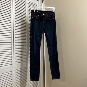 Designed in a clean denim wash, this mid rise women's super skinny jean features classic gold stitching and clean chrome hardware. Finished with our iconic horseshoe detailing along the back pockets.