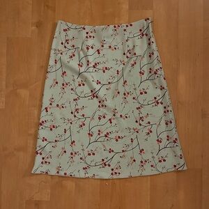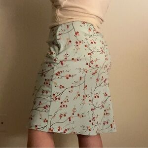 TRUE VINTAGE 90s Express Cherry Blossom Teal Knee Length Skirt size 5/6