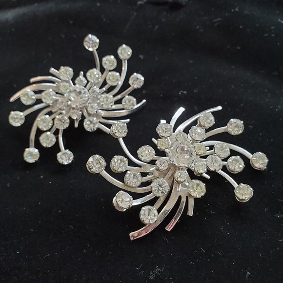 THIS IS A PAIR OF SPECTULAR RHINESTONE CLIP-ON EARRINGS. THE EARRINGS ARE IN PERFECT CONDITION. THEY MEASURE 2-1/2".