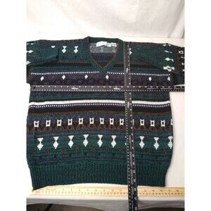 TRUE VTG Michael Gerald Geometric Colorful Crewneck Knit Sweater SZ Large 70s