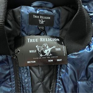 TRUE RELIGION Men's Navy Iridescent Fashion Bomber Jacket Size XL.