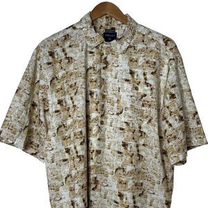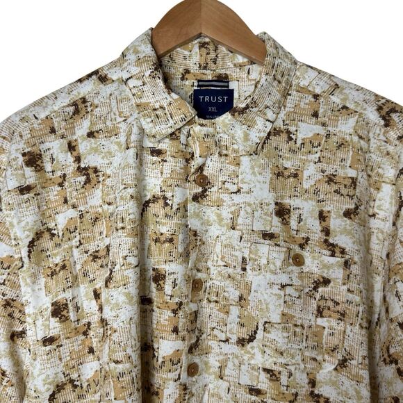 TRUST Mens Size XXL Linen Rayon Button Up Shirt Short Sleeve Tan Beige Brown