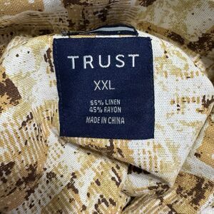 TRUST Mens Size XXL Linen Rayon Button Up Shirt Short Sleeve Chest Pocket Tan Beige Brown