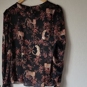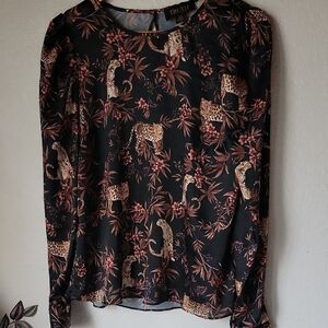 TRUTH By Republic Black and Brawn Leopard Prin Blouse with Collar Size S