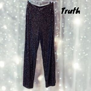 TRUTH NWT WOMENS WIDE LEG BLACK SEQUIN SPARKLING TROUSERS PANTS SIZE 8 PARTY