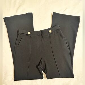These black boot cut jeans feature a sleek and smooth finish, offering a polished and versatile look. The deep black color ensures a uniform appearance, perfect for any occasion. Enjoy the classic boot cut style that pairs well with various footwear options.