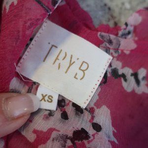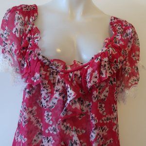 TRY B PINK WHITE FLORAL LACE SILK TOP XS *