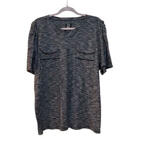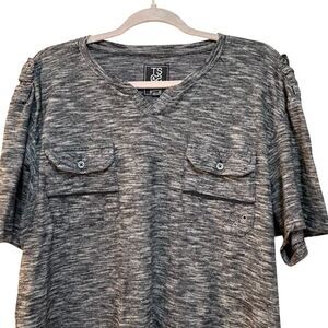 TS & CS Shirt Womens Large Gray Short Sleeve V Neck Pocket Casual Top