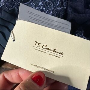 TS Courture Blue Lace Chiffon Padded Evening Gown
