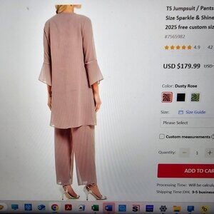 TS Jumpsuit / Pantsuit Mother of the Bride Dress Formal Wedding Guest Elegant Plus Size Sparkle & Shine Scoop Neck Floor Length Chiffon Lace Sleeveless with Appliques, Size 24. Please refer to the photos for measurements, or the website is Light in the Box. They no longer have any models or pictures with that specific color (they must not carry the color any longer or they are out) which is listed on the invoice as Regency (purple) but I posted the photos in a different color to show what it looks like on. Never worn, the pants and the inner blouse are nice and both lined with a satan(ish) like fabric. I love the sleeves with the "appliques", really pretty.