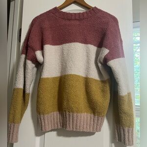 Cozy pink fuzzy sweater in medium size. Perfect for a warm and stylish look.