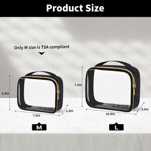 TSA Approved, Compliant with Liquid Regulations : This medium-sized clear makeup bag measures 7.8 x 2.3 x 5.9 inches,meeting TSA's 3-1-1 Liquid Rule.It ensures a smooth passage through airport security screening.Note: The large clear toiletry bag measures 9.8 x 3.1 x 6.6 inches, exceeding one quart and not approved by TSA.