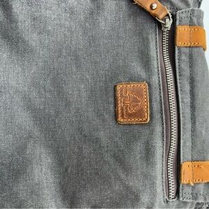 TSD Brand Canvas & Leather Backpack Messenger Bag w/Metal Clasp Pockets